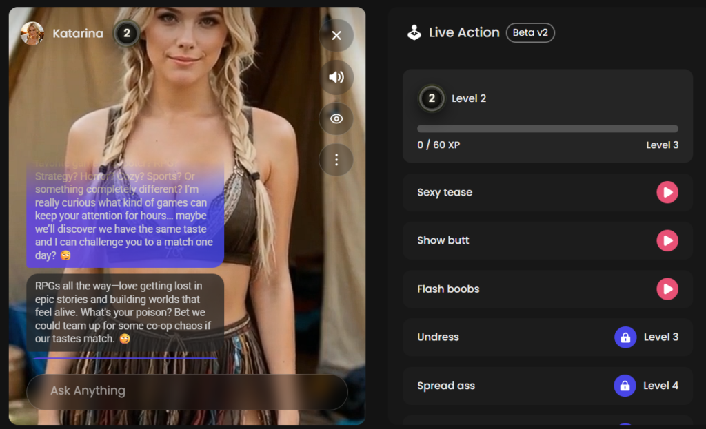 Chat & Personality The AI is incredibly consistent. It remembers names, dates, preferences and even jokes from a week ago. Conversations feel like talking to a real girl.