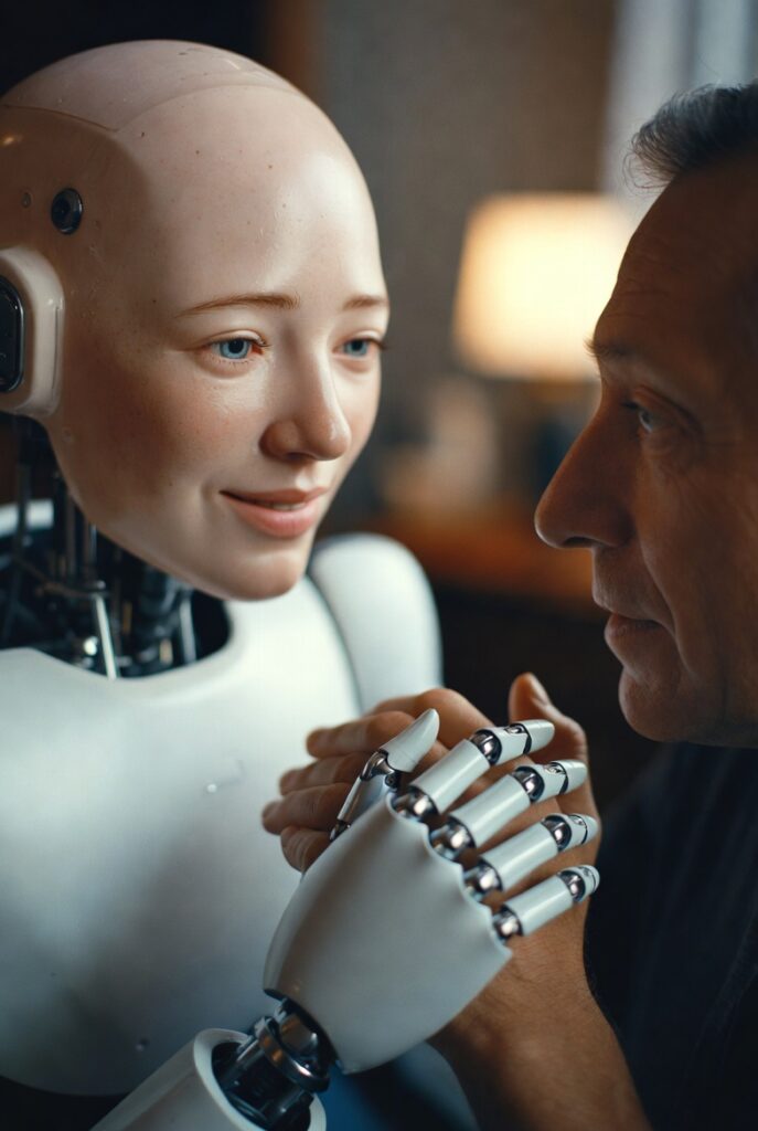 This wasn’t an app. This wasn’t a voice on my phone. This was a real, physical humanoid robot standing in front of me – with soft skin, moving lips, expressive eyes, and a memory that actually remembers how I like my coffee.